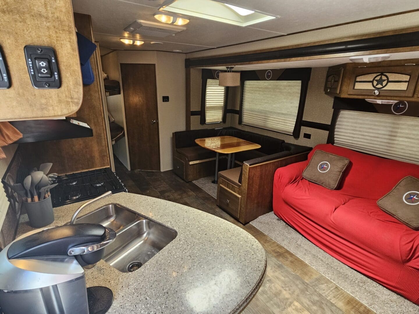Twins are in a bunk area, fold outs are in the main living area - 1 full fold out dinette